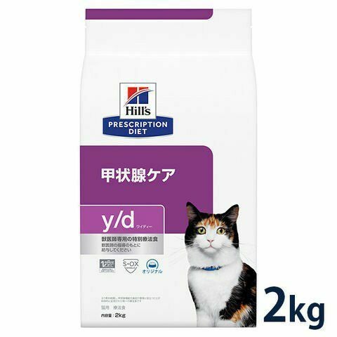ヒルズのプリスクリプション・ダイエット 〈猫用〉 y/d ドライは、ヨウ素を制限し、3週間の単独給与で、甲状腺機能亢進症の管理に役立つことが科学的に証明された唯一の療法食です。効果を最大化するためには、この療法食を長期間食べることが重要です。