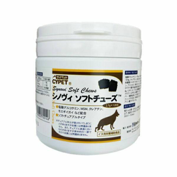 塩酸グルコサミン、MSM(メチルスルホニルメタン)、クレアチン一水塩、緑貼貝抽出物、EPA、DHA、および抗酸化剤を含有する嗜好性の良い柔らかいチュアブルのイヌ用総合栄養補助食品です。