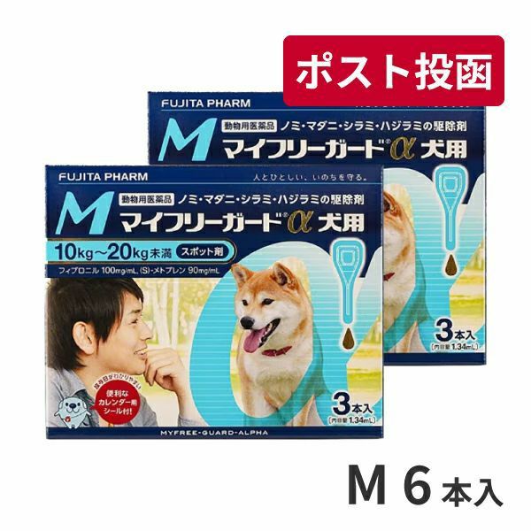 ゆうパケット(宅配便同梱不可)【2箱セット】マイフリーガードα 犬用 M (10-20kg) 3本×2箱 (動物用医薬品)