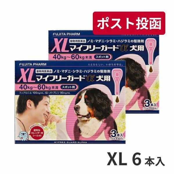 ゆうパケット(宅配便同梱不可)【2箱セット】マイフリーガードα 犬用 XL (40-60kg) 3本×2箱 (動物用医薬品)