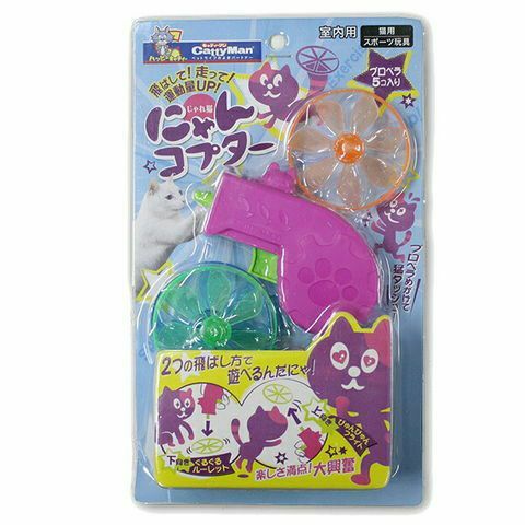 ・上向きに飛ばしたり、下向きに飛ばしてルーレットのようにぐるぐる回したり、2つの飛ばし方で遊べて、猫ちゃんは大興奮。