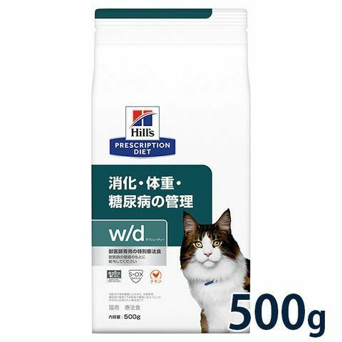 ヒルズの栄養学者と獣医師が開発した、ヒルズ プリスクリプション・ダイエット(特別療法食)〈猫用〉 w/d ドライは、可溶性繊維と不溶性繊維のバランスの良いブレンドと高レベルの食物繊維*1 による消化、体重管理、糖尿病の管理と下部尿路の健康に役立つことが科学的に証明された療法食です。