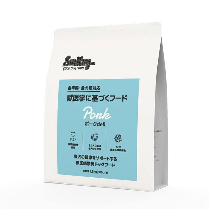 豊富なビタミンB1、不飽和脂肪酸(オレイン酸)、カルニチン、ナイアシンなど多くの栄養素を持つ豚生肉使用で愛犬の健康な体型、皮膚被毛の維持